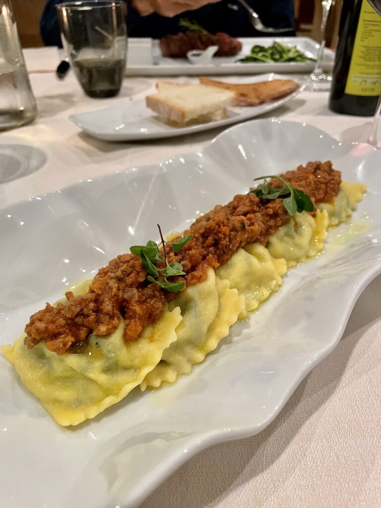 The villa was once a noble residence, and today the hotel rooms are beautifully decorated with antique Tuscan furniture and beautiful linens. Our deluxe room had a spacious terrace overlooking the vineyards and rolling countryside. I highly recommend stargazing on this terrace with a bottle of wine. During our stay we really enjoyed their restaurant “La Limonaia,” which features a seasonal menu of food and produce directly from the agritourism’s vegetable garden. Some of the most memorable dishes we enjoyed were the fried zucchini flowers, bean soup with wild chards, homemade beef ragout, spinach and ricotta tortellini, beef with zucchini spaghetti, and last but not least, the delightful lemon tart. Y’all know I had to get the lemony dessert! During the day we enjoyed several leisurely walks through the vineyards. I cannot recommend this gorgeous place enough!