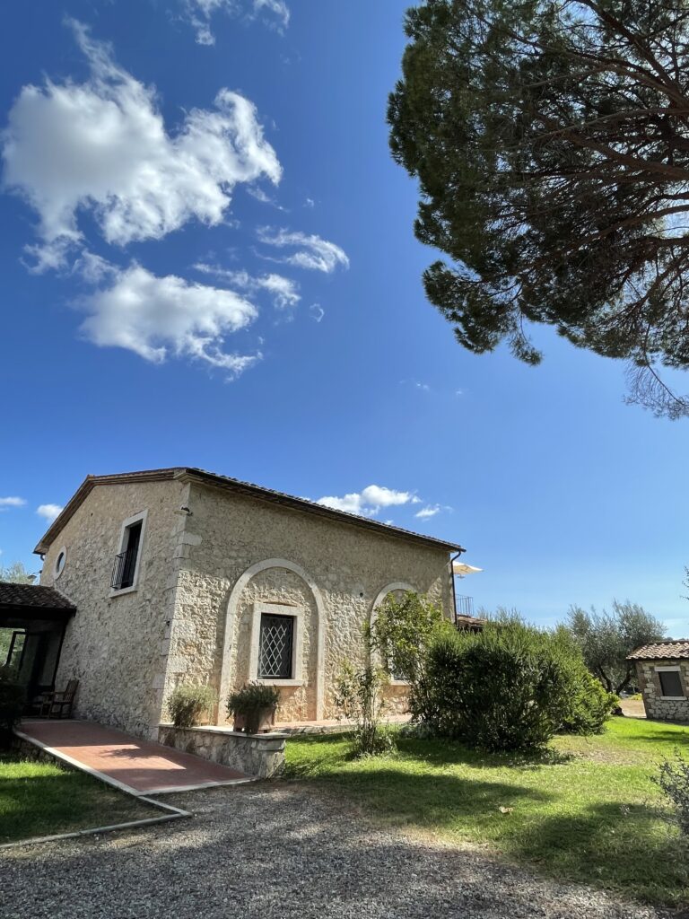 If you are visiting the famous Saturnia hot springs and looking for a villa located directly on top of a winery, then this is the place for you! You can imagine my delight when I realized I had stumbled upon quite literally a “wine resort.” Upon entering through the gates of Villa Acquaviva, you are taken along a dirt path with towering olive trees and breath-taking views of the surrounding vineyards. When we got to the villa, we were greeted by the family’s adorable pup, Arturo. I immediately knew I was going to love this place after seeing how dog-friendly it was!