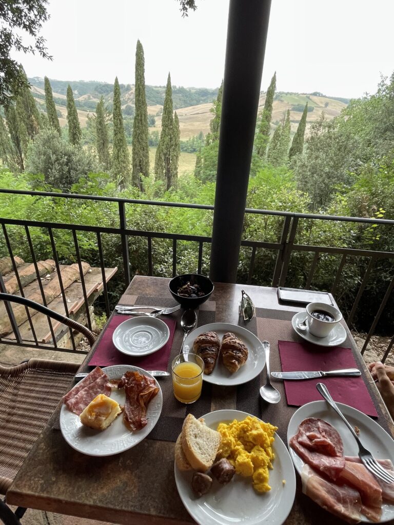 I was especially blown away by the quality of the dishes – we enjoyed the most amazing Rosso di Montalcino, risotto, sea-salt encrusted bistecca alla Fiorentina (Florentine Steak), and decadent tortino al cioccolato (chocolate torte) for dessert. In the morning the restaurant served an immaculate spread of fruit, eggs, bacon, pastries, and other breakfast treats. It was truly an unforgettable experience all around. I highly recommend this place for a romantic couples retreat!